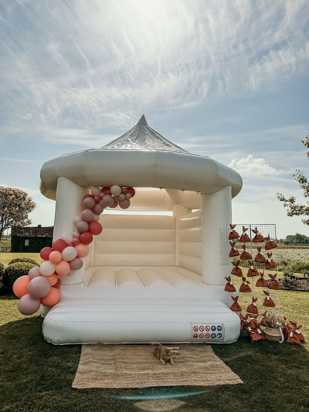 Tijdens de voorbereiding van ons trouwfeest waren we op zoek naar iets dat onze genodigden nog niet eerder gezien hadden. Via vrienden kwamen we terecht bij Air Blanche. Zij waren nog in volle opstartfase, maar toch mochten we Juliette al huren voor ons feest. Het springkasteel was een groot succes! Wij en onze gasten waren ‘letterlijk’ in de 7e hemel. Het maakte ons feest echt af!
