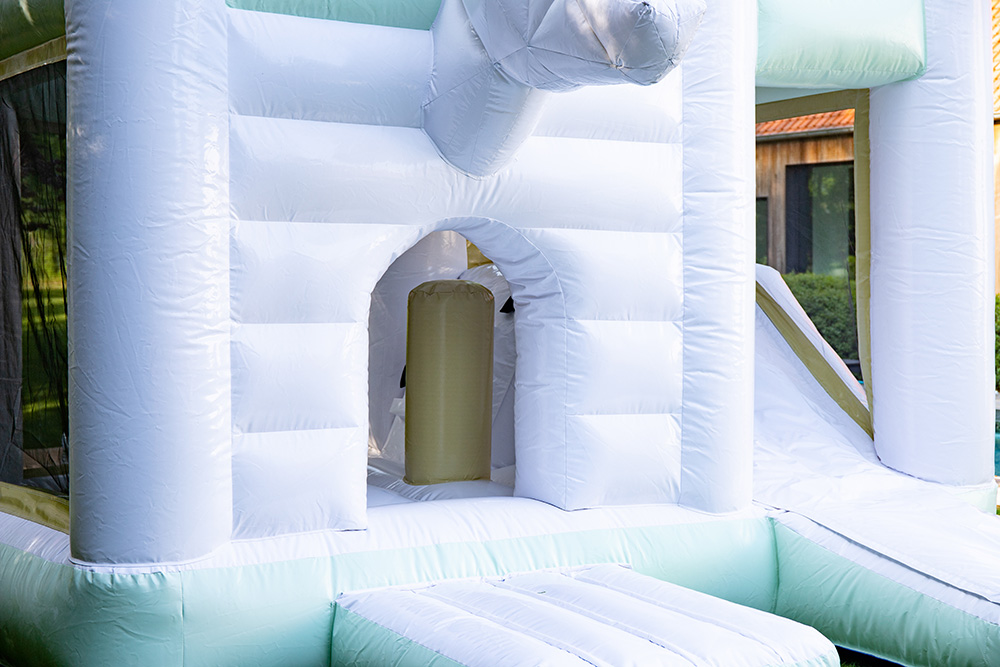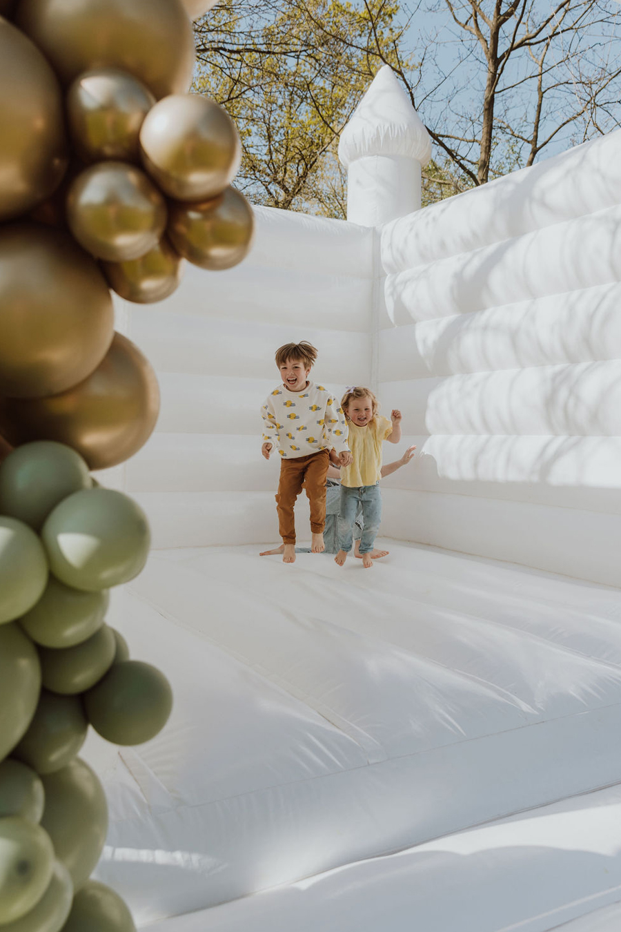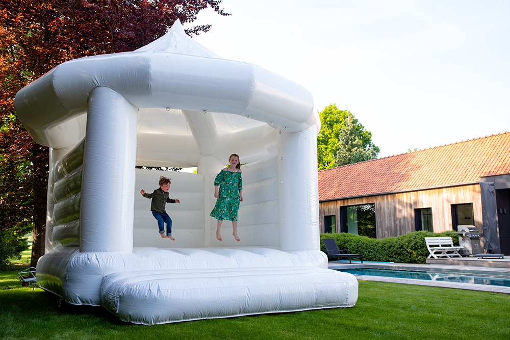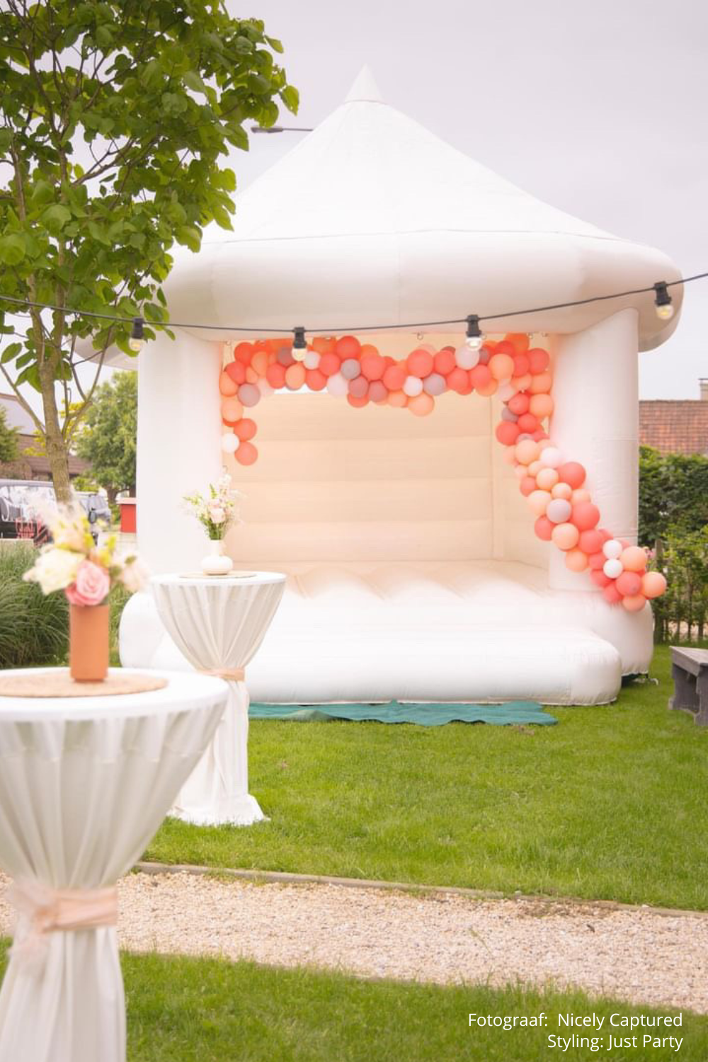 Tijdens de voorbereiding van ons trouwfeest waren we op zoek naar iets dat onze genodigden nog niet eerder gezien hadden. Via vrienden kwamen we terecht bij Air Blanche. Zij waren nog in volle opstartfase, maar toch mochten we Juliette al huren voor ons feest. Het springkasteel was een groot succes! Wij en onze gasten waren ‘letterlijk’ in de 7e hemel. Het maakte ons feest echt af!